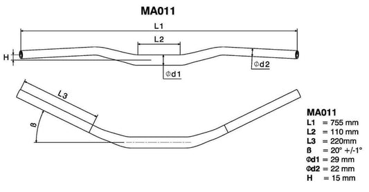Rizoma Retro 1 Inch 15mm Height Tapered Blue Handlebar